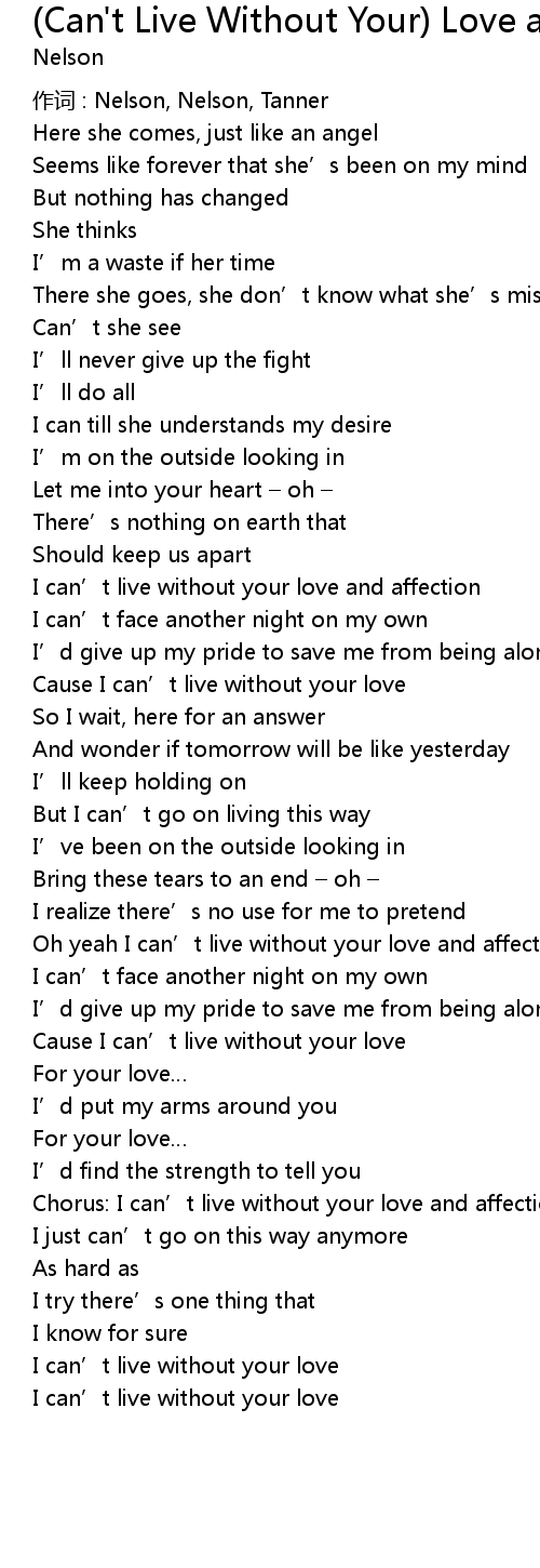 Lyrics Can T Live Without Your Love And Affection By Nelson